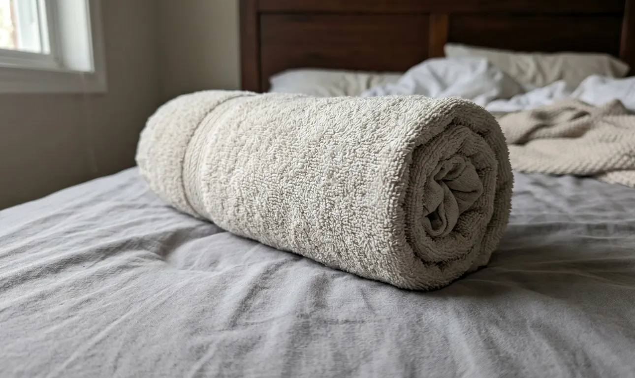 Ennek a háztartási hacknek a középpontjában a gyengéd húzás és a stresszoldás a saját súlya hatása alatt. A végrehajtáshoz nincs szükség különleges felszerelésre – csak egy közönséges fürdőlepedőre és némi szabadidőre. Úgy vettem észre, hogy ez a megközelítés remek módja a kikapcsolódásnak egy nehéz nap után.